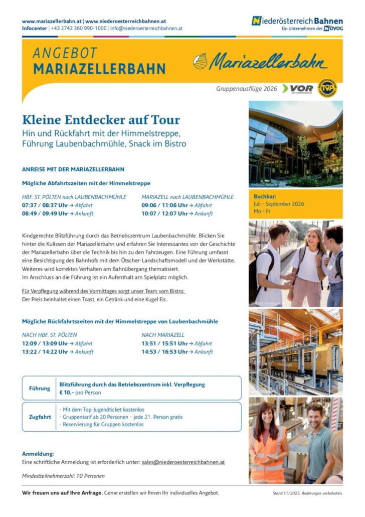 der Mariazellerbahn über die Technik bis hin zu den Fahrzeugen. Eine Führung umfasst