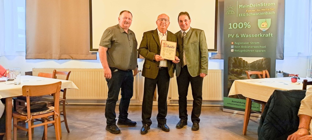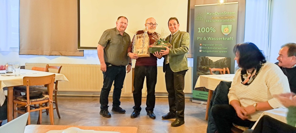 Christian Buder informierte über die Energiegemeinschaft MeinDeinStrom Schwarzenbach und warb um neue Mitglieder, da derzeit mehr Strom produziert wird, als innerhalb der Gemeinde abgenommen werden kann.